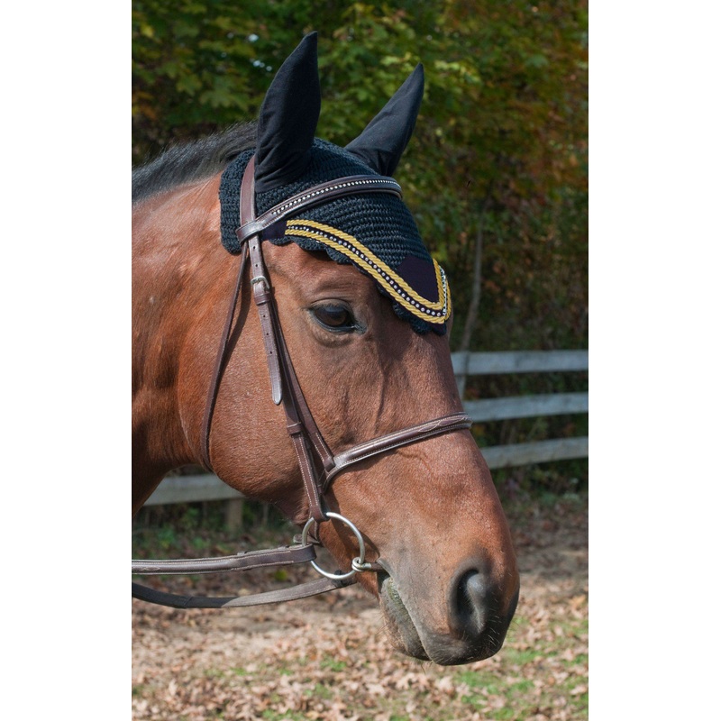 Paris Tack Crochet Horse Fly Veil Ear Bonnet with Crystals has been designed to not only help your horse look great but to keep them more comfortable and focused when under saddle. Our ear nets provide a barrier between your horses ears and the outside world, which helps to muffle loud sounds to keep your horse calm and focused during competitions and events. Our bonnets also help protect against insect bites, sunburn, frostbite, dirt, debris, and more. This ear bonnet is made of soft woven cotton to promote optimum comfort. Cotton is breathable and gentle against your horses delicate skin, making it comfortable to wear any time of year.