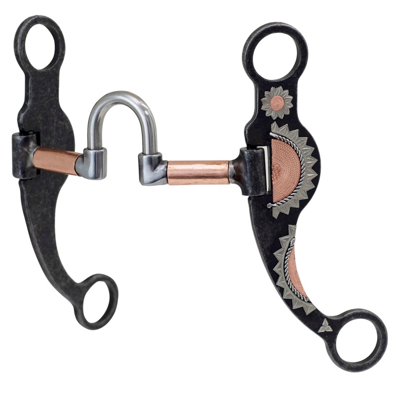 Partrade Metalab Sunflower Collection Correction BitCorrectional mouthpiece with copper rollers on the bars7-1/4 cheekHand engraved trim5-1/8" MouthpieceDark Grey Steel Finish
