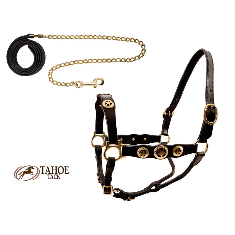 Elevate your horse's style with the Patriotic 24kt plated Gold Star Halter from Tahoe Tack. Handcrafted with 24kt gold plated stars, this halter adds a luxurious touch to any draft-sized horse, showcasing your patriotism with elegance and sophistication. S