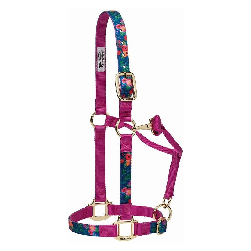 Weaver LeatherPatterned Adjustable Nylon Halter With Snap Fashion-Forward designs combined with the finest materials make this Patterned Adjustable Halter a must-have! Fashionable patterned webbing pairs with coordinating solid webbing to give these vibran