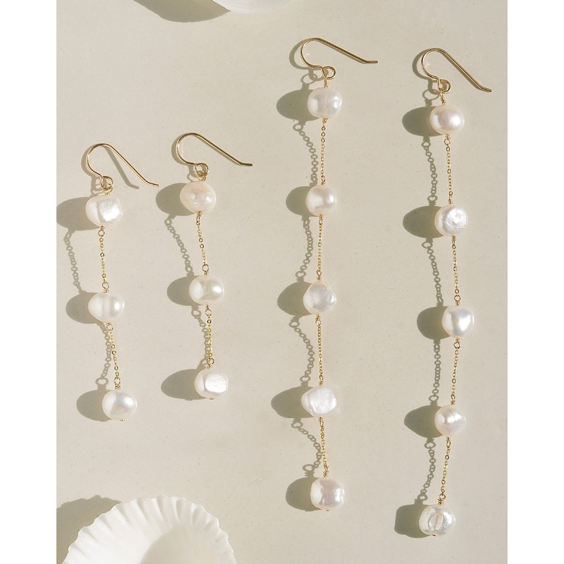 Material:14k gold fill or sterling silverStone: 9mm freshwater pearlsDimensions: 3 length (short) or 5 length (long)