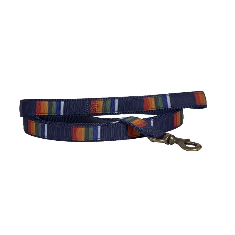 The Carolina Pet Pendleton National Park Hiker Crater Lake Dog Leash is a great combination of style and function. The leash has printed park stripe grosgrain ribbon stitched onto nylon webbing. The antiqued brass snap bolt makes connecting to the matching collar a breeze.
