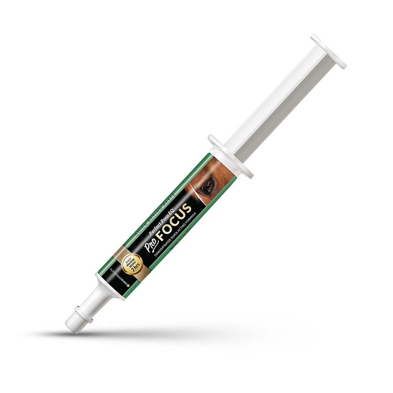 Perfect Prep EQ Pro Focus delivers powerful, concentrated equine focus support in an easy-to-give 30 cc rapid release paste for an exceptionally focused horse while avoiding the feeling of fatigue. Use 2 hours before performance. Effects peak at 3 hours an