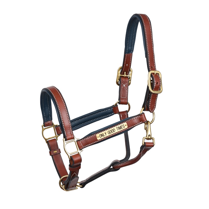 Each halter includes a personalized plate matching your chosen hardware color, with up to two lines of text.