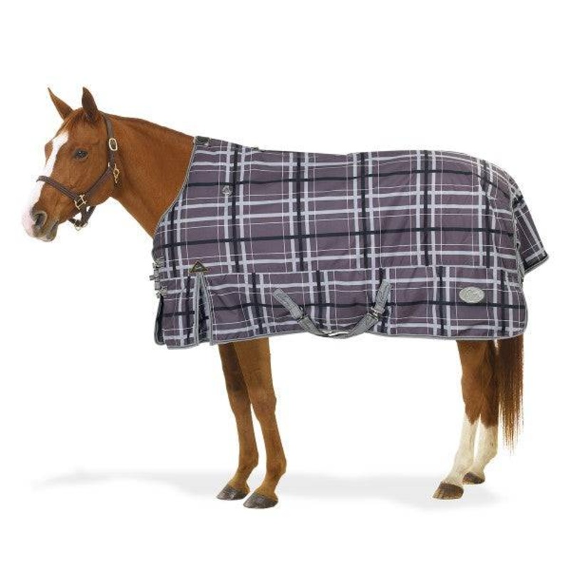 This top of the line Waterproof-Breathable Turnout blanket from Pessoa features a 1200 denier waterproof breathable Oxford polyester outer shell, 180 gram insulation, and 420D quick-dry nylon lining. Patented Exceler closure system where you adjust the front closures just once and there after just snap the blanket closed. Hook & Loop sandwich closure adds to the security. Other features include: standard 16″ shoulder gussets, fleece wither, dual low cross flexi t-lock surcingles, four rear inside d-rings with double bolt snap elastic adjustable removable leg straps, rustproof satin finish hardware, reflective Pessoa logo on both sides, reflective piping, and large umbrella tail flap.