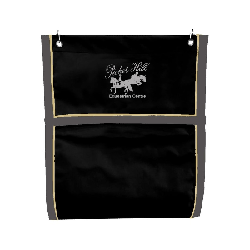 Stay organized with our premium Sunbrella bandage sling. Slightly larger that our Classic Bandage Loop, it comes with eyelets on either corner for hanging.Available Color:black base,tan piping, charcoal bindingIncludes embroidered logo in silver