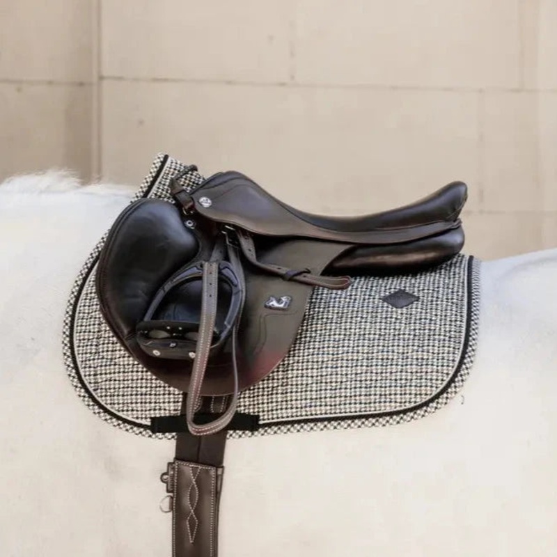 Bring a graphic and chic look to your outfit with this Saddle Pad Pied-de-Poule.- Quilting in stars- Pied-de-Poule print- Double twist piping- Jumping shape- Space for embroideryWhats specialThis saddle pad is printed with the Pied-de-Poule pattern, a fash
