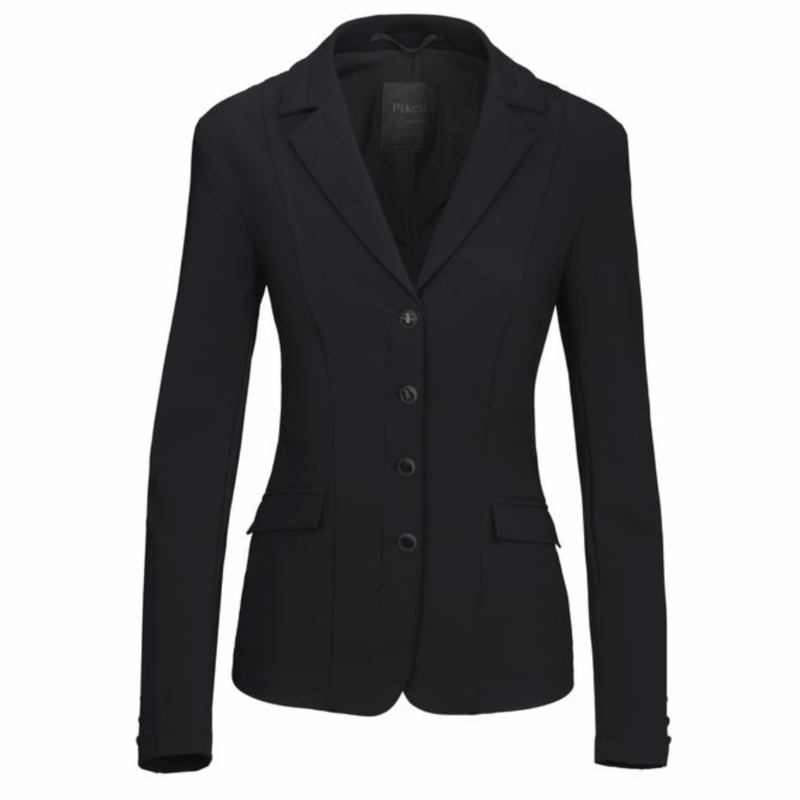 The Pikeur Competition Jacket is expertly designed with a laser-cut back for ventilation and a breathable tech jersey fabric. The inside is lined with breathable mesh, while the concealed front zipper and perforated stripes add functionality. With flap poc