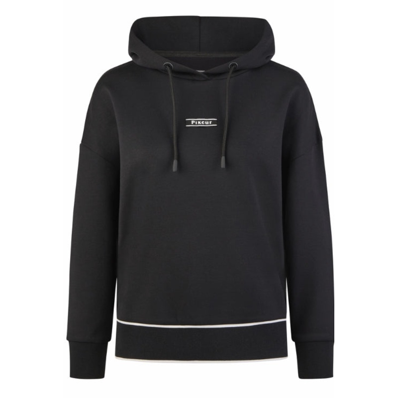 "PIKEUR HOODY"Sporty hoodyComfortable, summery fabricCuffs and hem in ribbed knitBack hem with contrasting interwoven Pikeur labelWeb band at front to fasten hood cord and Pikeur print in white