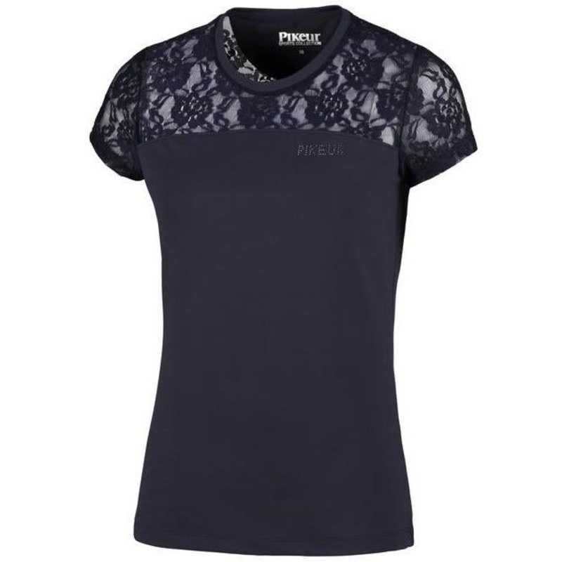 The Pikeur Nava Ladies Functional Shirt is a gorgeous shirt with lace insert at the top and on the full sleeve.It features an elegant Pikeur logo in small stones on the chest. The Nava would look great for work with Jeans & Breeches so its a very multifunc
