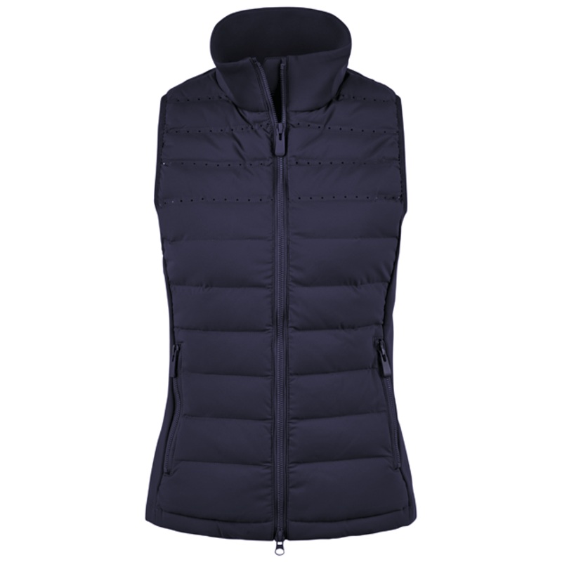 New for 2025 - a stylish and very comfortable, practical gilet for horse riding or working around the yard.Elastic hybrid waistcoat with stand-up collarSide section in Softshell material: brushed surface inside, waterproof and windproofFront and back secti