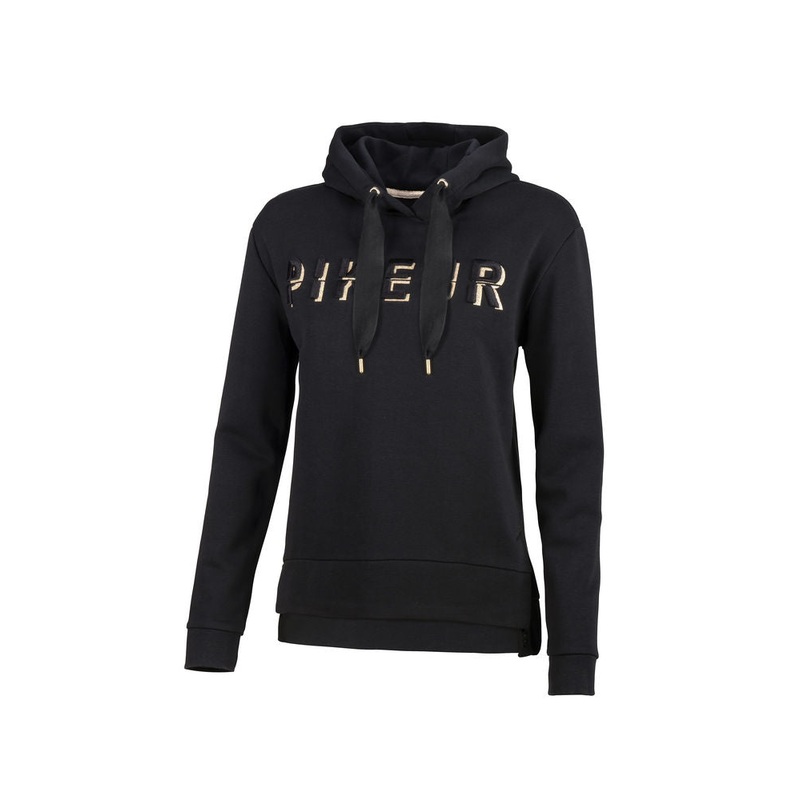 Pikeur Lilja New Generation Oversized Hoody. A super cute and cosy addition to the collection. Cut in an oversized fit made from the most comfortable fabric, with stylish PIKEUR emblem in gold glitter print across the chest.