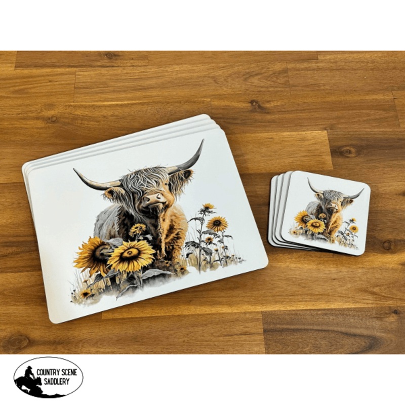 Placemat & Coaster Set – Sunflower Highland Cow