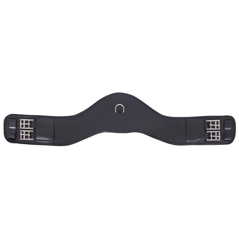 Soft padded double end expansion anatomic dressage Girth.Anatomically shaped to increase movement and provides more room behind the horses front legs.Ideal for Saddles fitted with long girth points.Fitted with Centre D attachment.Stainless steel fittings.H