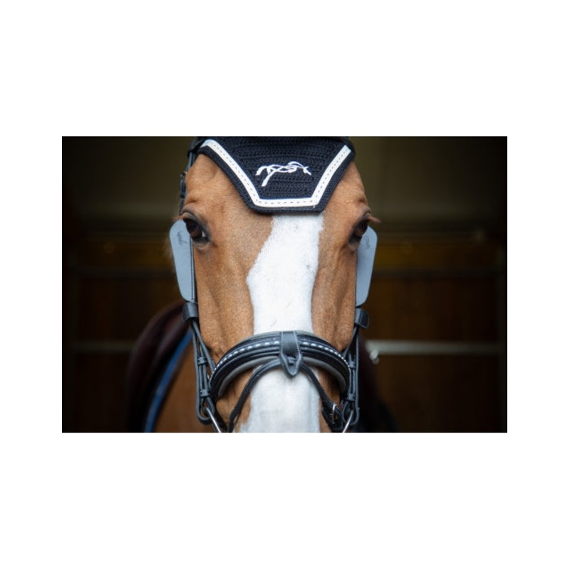 Leather blinkersto put on a bridle tohelp the horse’s concentrationwhileworking riding or jumping.TheAustralian blinkers from thePenelope collectionsallow toclosemoderatelythe horse’s vision field to direct it forward. They areeasy to put onthe noseband uprights thanks to itsscratch and elastic system. The added detail : they are delicatelyembossed with thePenelope logoon the flat part.