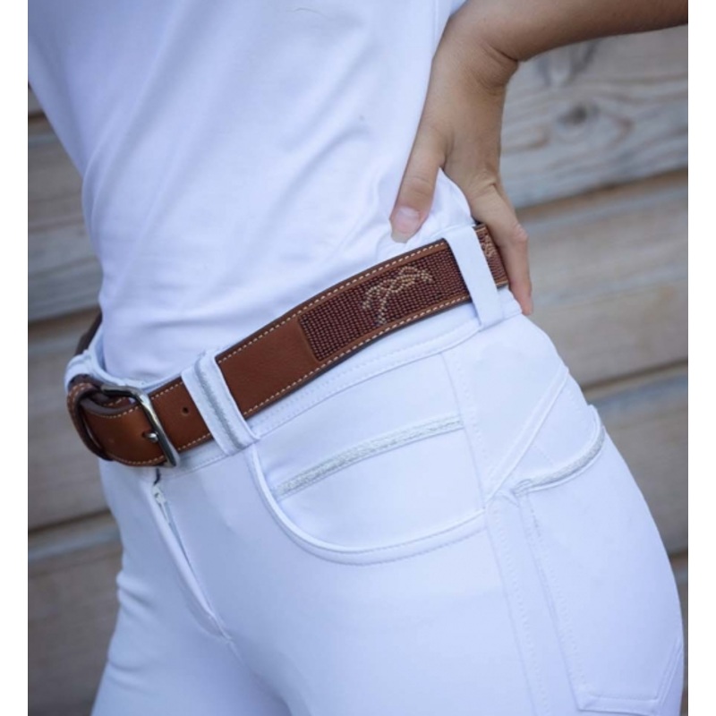 Beautiful, Soft leather with variations of sewed beads, this exquisite belt can be paired with breeches or more casual wear for a stylish look.