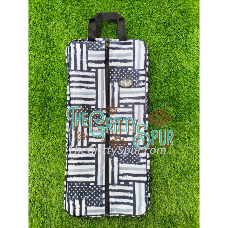 Thin Grey Line Bridle bag! Exclusive to my business! Has a velcro strap inside to hold your bridles. This is "Typically" a pre order. Meaning it can ship in anywhere between 3-40 business days depending on when my restock hits.