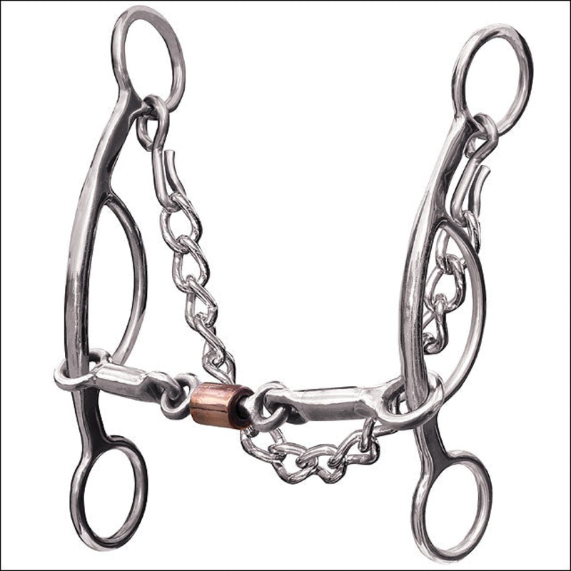 • Size: 6.5″Product ID: PC-BRB-203 — PROFESSIONAL CHOICE FUTURITY HORSE BIT 3 PIECE SMOOTH MOUTH 6.5″ CHAIN