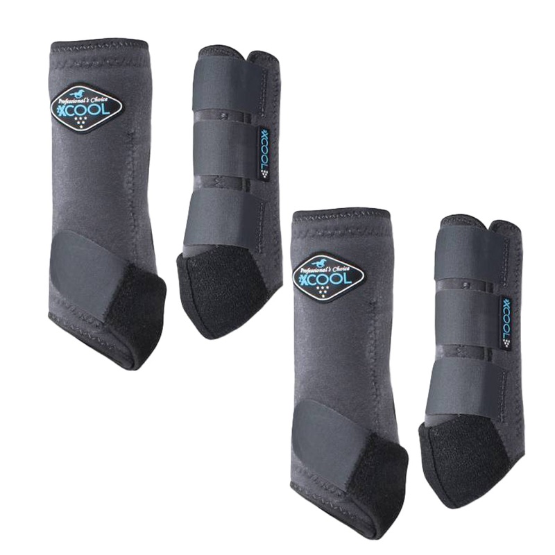 Professional’s Choice 2XCool Sports Medicine Boot Value 4 Pack- Charcoal The Professionals Choice 2XCool Sports Medicine Boot was designed around COOLING, COMFORT, and DURABILITY. This neoprene-free boot is constructed with ultra-lightweight, super-breathable materials that provide the support and 4-way stretch Professionals Choice boots are known for. The liner of the boot is made with 2XCool performance fabric by brrr, a technologically-advanced textile that combines natural cooling minerals, active wicking, and rapid drying to create a Triple Chill Effect that instantly and continuously draws away heat and moisture. A new stretch Kevlar patch on the suspensory strap flexes with every step to provide ultimate support and durability without restricting freedom of movement. The Professionals Choice 2XCool Sports Medicine Boots featuring brrr will keep your horses legs cool, dry, and protected.