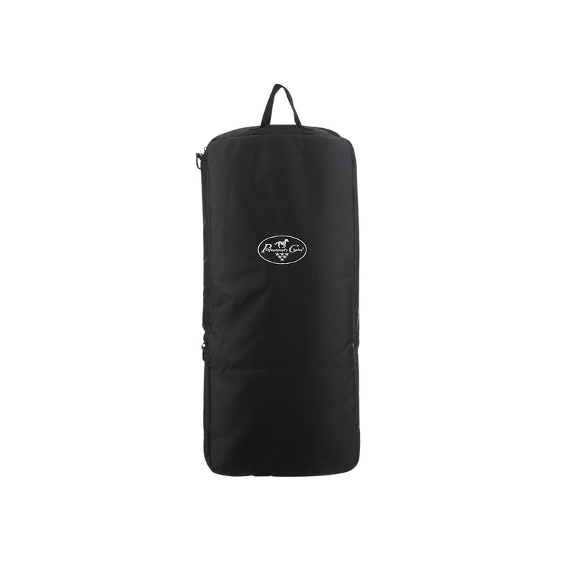 Quilted Bridle Bag securely holds six bridles and features two bottom pockets for holding accessories such as bits. Bridle Bag opens in middle with center zipper for easy use, and two top handles are convenient for carrying or hanging.14" wide x 29" tall x
