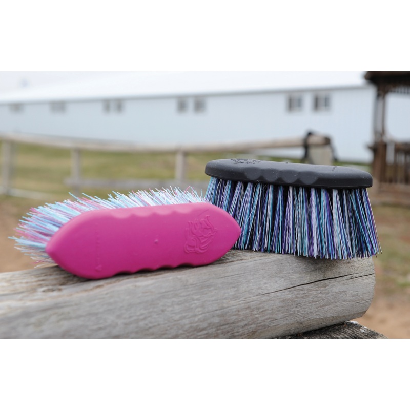 Rubber-backed brushesSynthetic bristles are hardy and durableGreat for flicking dirt off your horseColors may vary depending on in store stock