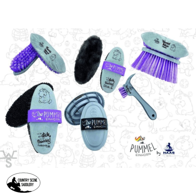 Pummelfee Einhorn is a popular celebrity unicorn cartoon figure in Germany.This set contains 6 brushes1)Pummelfee DIVA2)Pummelfee Gloss coat Fellglanz3)Pummelfee Rice Root (imitation) 3 cm4)Pummelfee Mane Brush 8cm5)Pummelfee Curry Comb6)Pummelfee Hoof pic