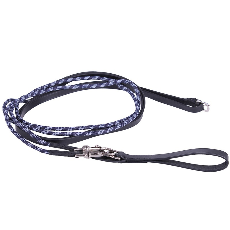 Leather draw reins decorated with a bicolour cord. Girth loop attachment and two strong snaps.Material: LeatherMaterial cord: PolypropeneMaterial hardware: Stainless steelLeather draw reinsFinished with bicolour cordLeather girth loop with D-ringEquipped w