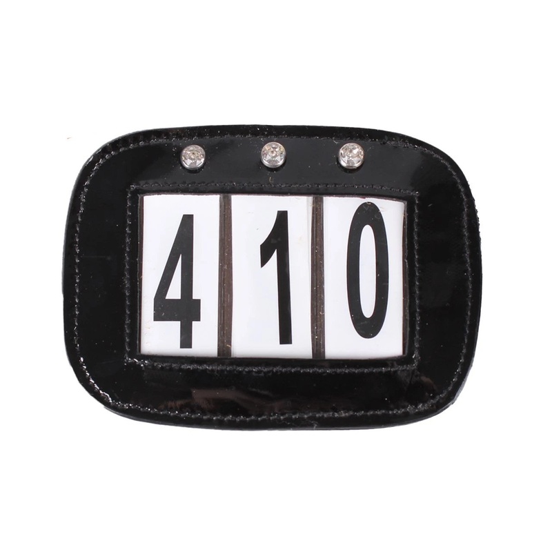 With this chic number holder you'll never be bothered by pesky flapping competition numbers. Delivered with numbers and easily fastened to a bridle or saddle pad.Number holder made from patent leatherFinished with 3 rhinestonesComes with interchangeable nu