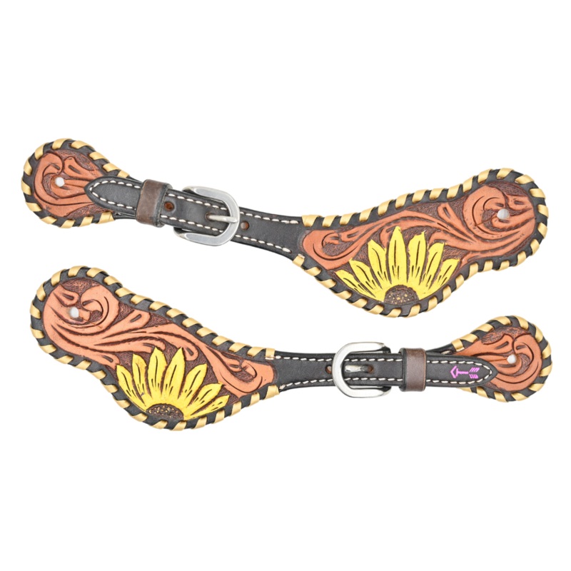 Rafter T Ranch Co. Painted Sunflower Ladies Spur Straps with Metallic Whipstitch to your collection for a unique and stylish addition that combines functionality, durability, and eye-catching beauty. These straps are designed to elevate your riding experience while showcasing your personal style.