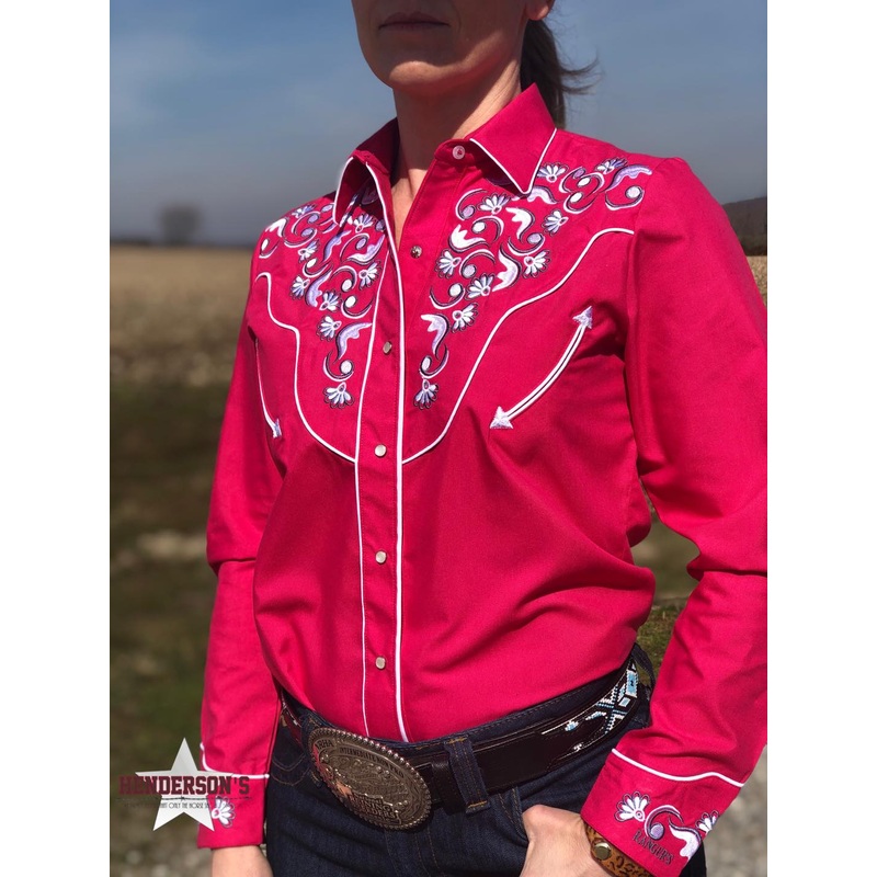 These Rangers retro shirts are amazing. They offer vibrant colors and pretty embroidery. These shirts feature embroidery in the front, back and on the cuffs. They have a snap button front and cuffs. Each shirt is accented with piping to highlight the embroidery.All of these shirts will be excellent for the reining and cow events. The ones without stones will cross over to the ranch classes!! This one has stones!!