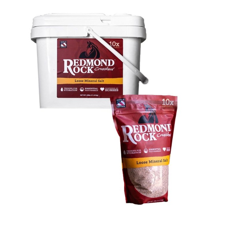 Redmond Rock Crushed is loose sea salt that’s packed with trace minerals and electrolytes that trigger your horse to drink and naturally bring him into mineral balance.Equine health issues often begin with mineral deficiencies and dehydration. Redmond Rock is a perfect hydration trigger and provides the minerals and elements your horse needs to stay healthy. Redmond Rock Crushed makes it easy to vary the amount of salt and minerals your horse receives based on diet and activity levels.Redmond Rock Crushed brand natural equine minerals provide a perfect blend of essential trace minerals and electrolytes your horse needs to live a more healthy, balanced life.Most horses are deficient in minerals. Today, even natural feeds lack nutrients. Redmond Rock Crushed plays an important role in providing the essential trace minerals missing from many natural forages.Created by nature, Redmond Rock Crushed is natural mineral sea salt harvested from deep within the earth in Southern Utah. Redmond Rock contains more than 60 trace minerals.