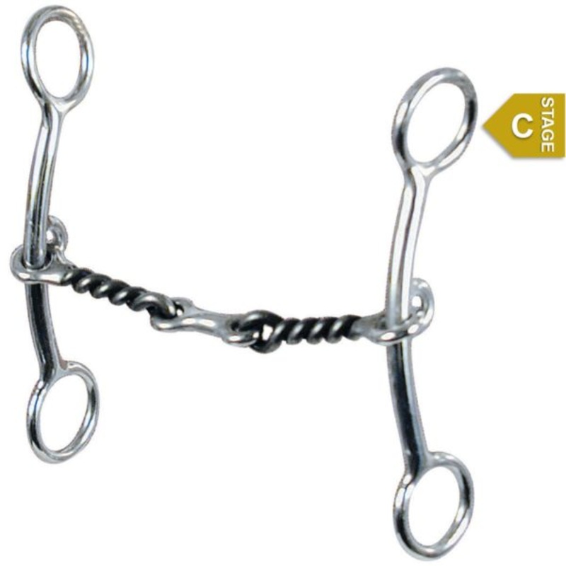 Reinsman Sharon Camarillo 3x3 Lite Lifter Bit 733 with 6 inch cheeks, 5 inch twisted sweet iron dog bone snaffle mouthThe slight gag design makes this lifter less intimidating and more accepting to many horses than the solid lifter. The three piece mouth o