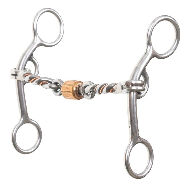Reinsman Stage B Moolah Lifter Gag Bit Designed by Professional Barrel Racer Sarah Rose Waguespack, the 284 Moolah Lifter features a three-piece copper and sweet iron twisted mouth coupled with a dog bone and roller. This metal combination encourages saliv
