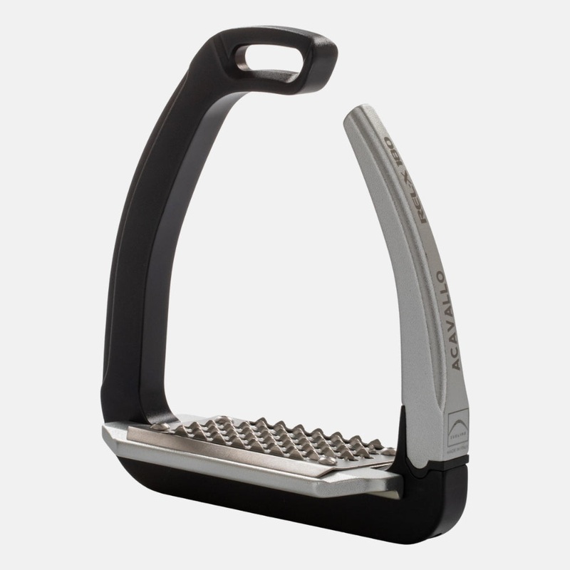 Acavallo stirrups in aluminium with patented 180 branch opening and rotation system. Even lighter and safer.The Rel-X 180 stirrups feature a patented side opening and an advanced technical composition thanks to innovative injection molding.Made with high-t