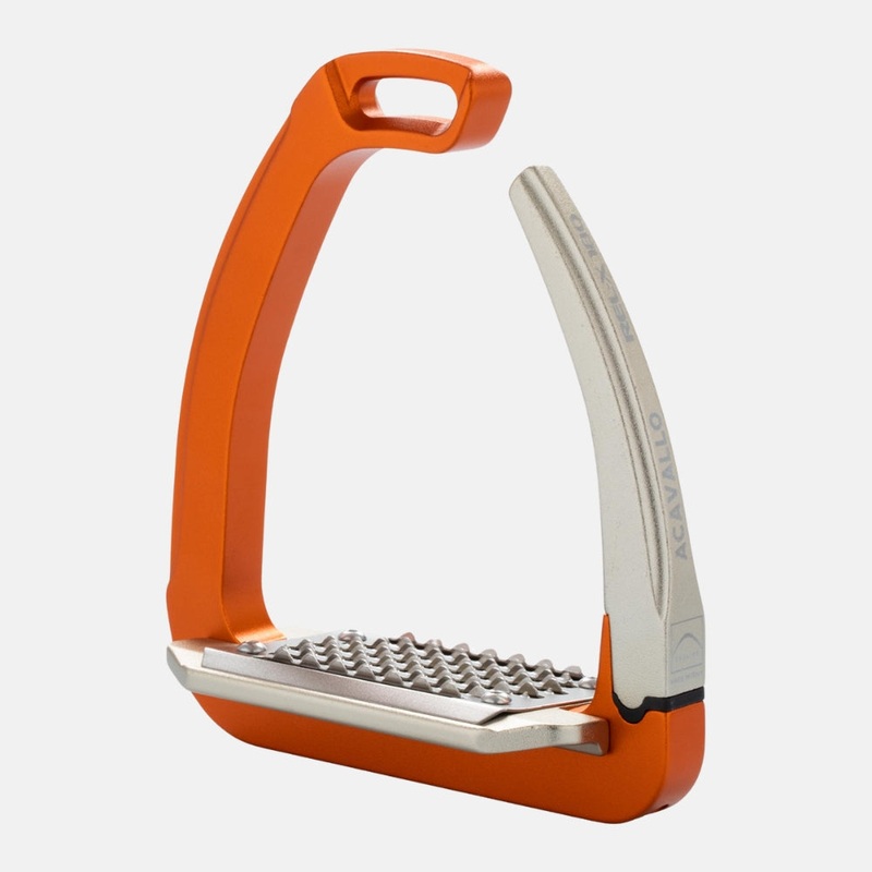 Acavallo stirrups in aluminium with patented 180 branch opening and rotation system. Even lighter and safer.The Rel-X 180 stirrups feature a patented side opening and an advanced technical composition thanks to innovative injection molding.Made with high-t