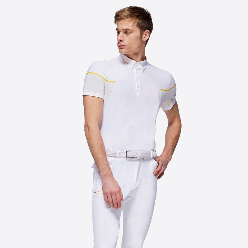 RG by Cavalleria Toscana Men's Jersey Short Sleeve Button Competition Polo - made of stretch technical jersey pique with mesh inserts that provide great breathability. Poplin collar with rubberized logo detail and hidden snap buttons on the neckbringsfashi