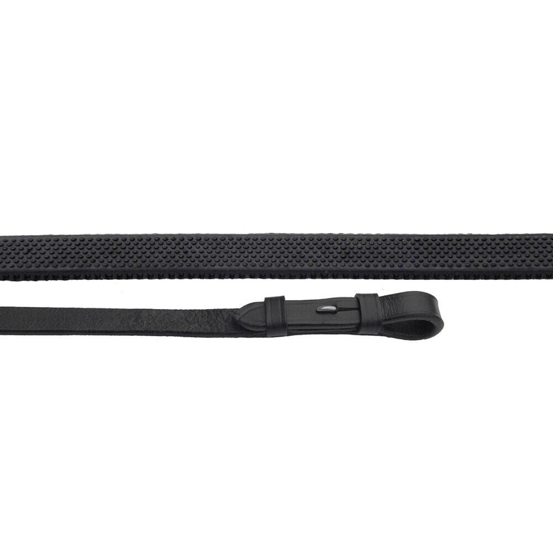 Smooth feel leather with a soft, pliable pimple grip rein.Small rubber pimples that feel easy to hold, nylon strengthened inside for extra security.Billet fasten ends.54" x 5/8"
