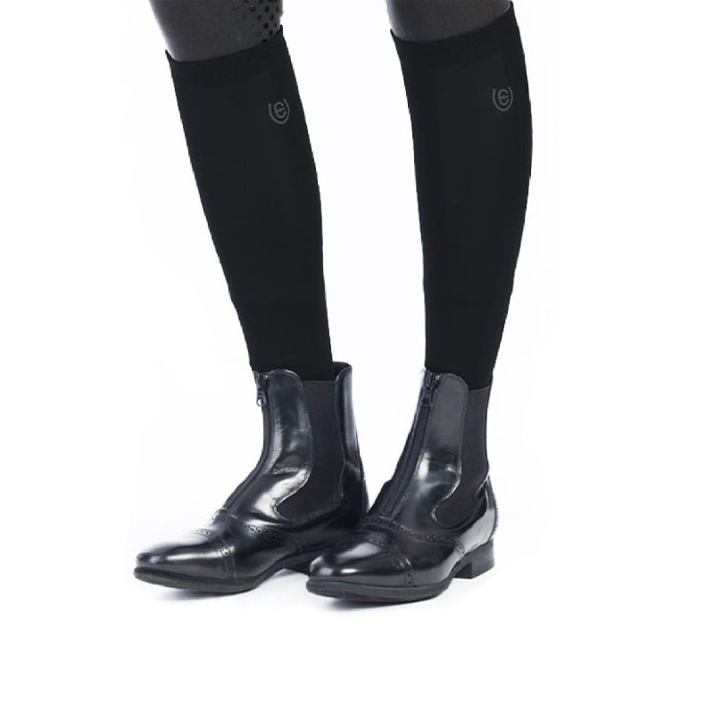 Soft and stylish riding socks in black with Equestrian Stockholm logo in dark grey. These stylish knee socks will keep your feet feeling comfortable and fresh in your riding boots as well in jodhpurs.