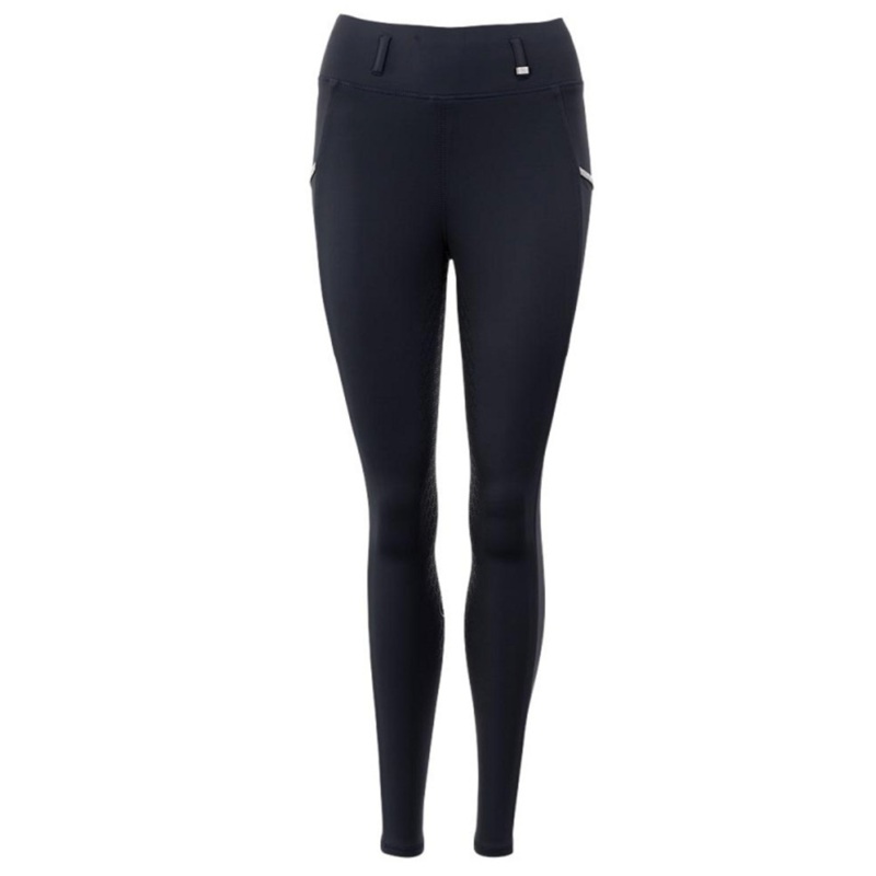 Dankzij het 4-way stretch in deze rijlegging is de stof rekbaar in vier richtingen. Hierdoor is de rijlegging nauwsluitend wat zorgt voor een optimale bewegingsvrijheid. Daarnaast is de stof ademend en sneldrogend voor veel draagcomfort. Op de voorzijde bevinden zich twee diepe zakken die geschikt zijn om je mobiele telefoon in de doen. De rijlegging is voorzien van een stretch tailleband met riemlussen en elastische beensluiting. Het siliconen zitvlak zorgt voor extra grip en een stabielere zit. De afwerking van glittertape op de broekzakken maken deze rijlegging op elegante wijze af.