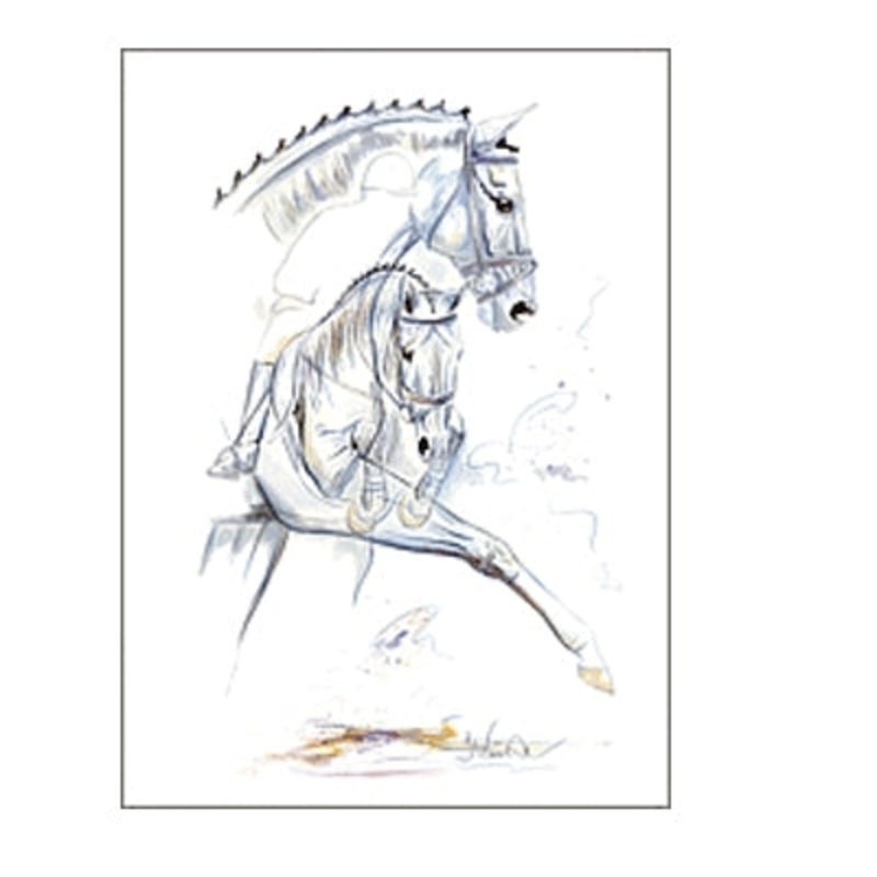 Riviera Jan Kunster is a German artist whose work is in museums all over the world. He has a unique style where the horse is emphasized in detail, but the riders are merely suggested with few lines.Size:19.75 x 27.5