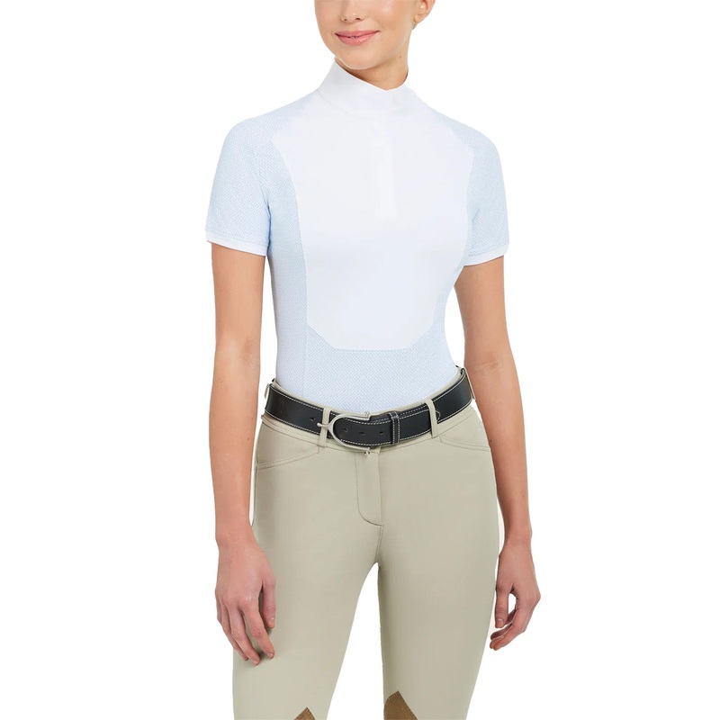 Designed to bring extra style and versatility into the show ring, the Tessa is the perfect addition to every riders wardrobe. Its modern seam lines and silky, cooling fabric ensures that riders stay comfortable and confident. The unique prints, paired with a white collar and front bib, elevate its style without compromising the classic look under a show coat.