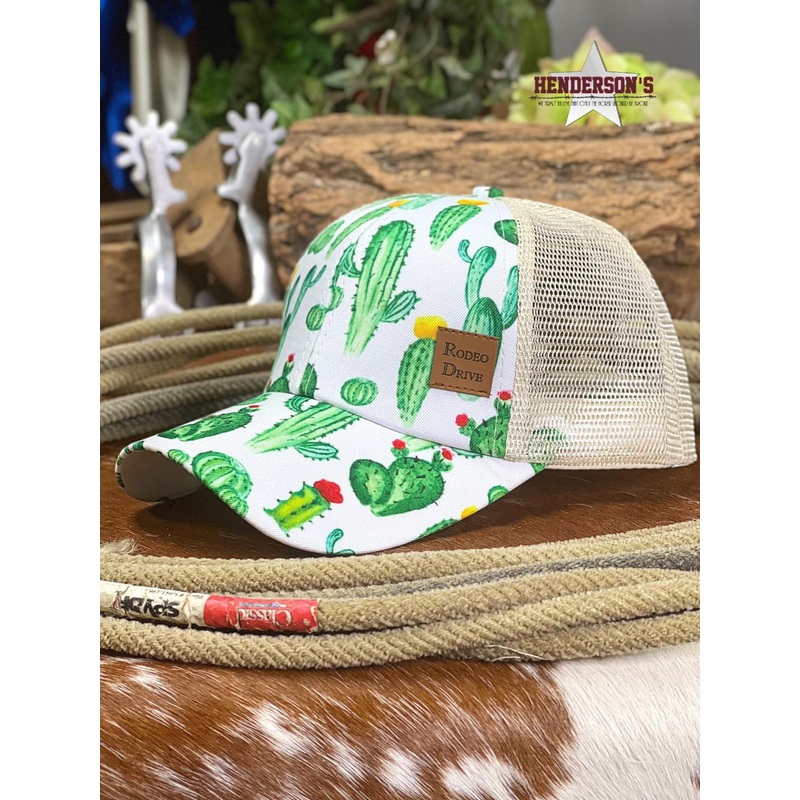 Rodeo Drive Conchos Ponytail Trucker CapCactus PatternLaced back allows for any height ponytailAdjustable