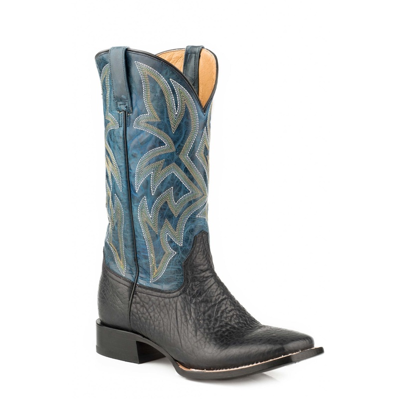 Roper Bull Boots feature black embossed bull shoulder leather and a beautiful blue stitched shaft.