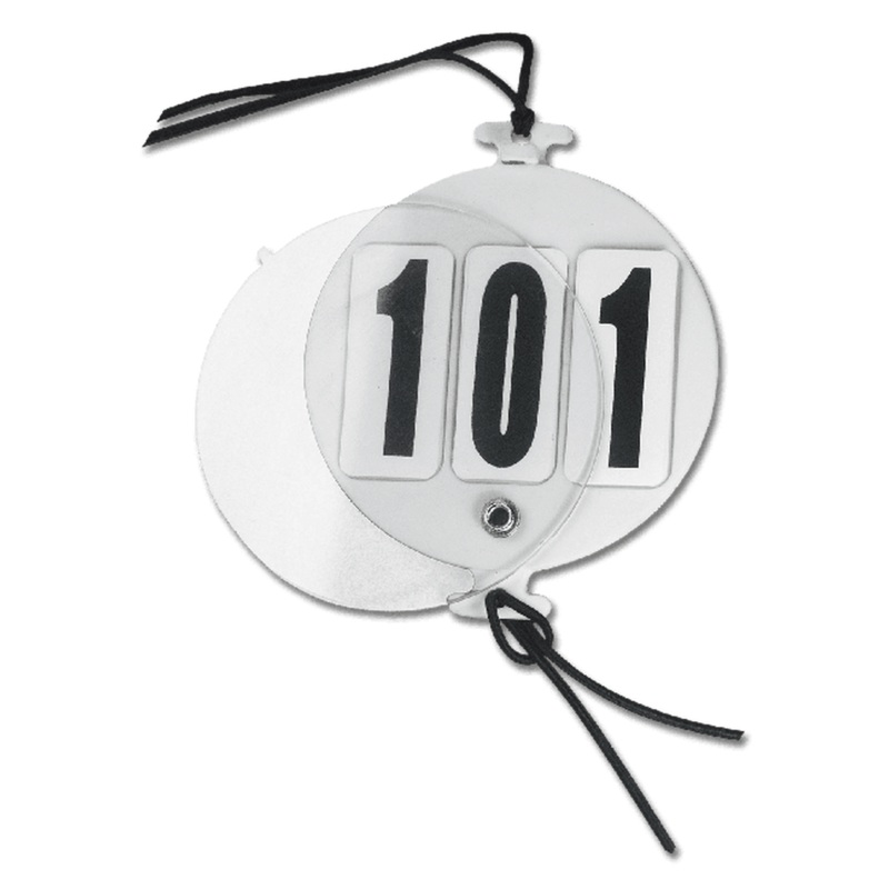 Round show adjustable show numbers. Includes rubber band for fastening. Comes as a pair.