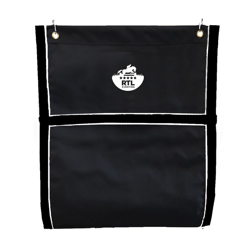 Stay organized with ourpremium Sunbrella bandage sling.Slightly larger that our Classic Bandage Loop, it comes witheyelets on either corner for hanging.Black base, white piping, black binding.Logo embroidered, option for name embroidered in white.