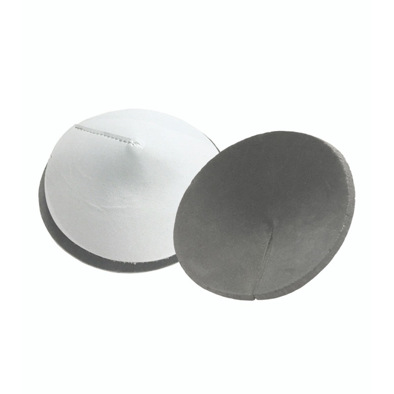 3 3/4″ diameter. Made of suede that is glued to 1/8 inch thick dense foam padding. (DOES NOT have a peel-n-stick adhesive)