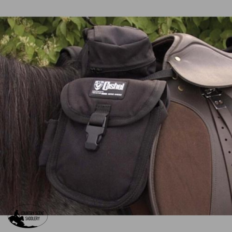With its close fit & contoured design , this bag is made to suit English saddles. It has a rather low profile & non restrictive in nature . It attaches securely to the front of the saddle & anchors neatly under the fender. Strong, accessible fasteners keep everything in place.