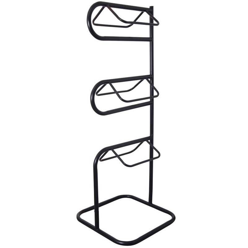This 3-Tier Saddle Display Stand is ideal for convenient access: Its top two tiers swivel, and it is easy to assemble with a black finish.