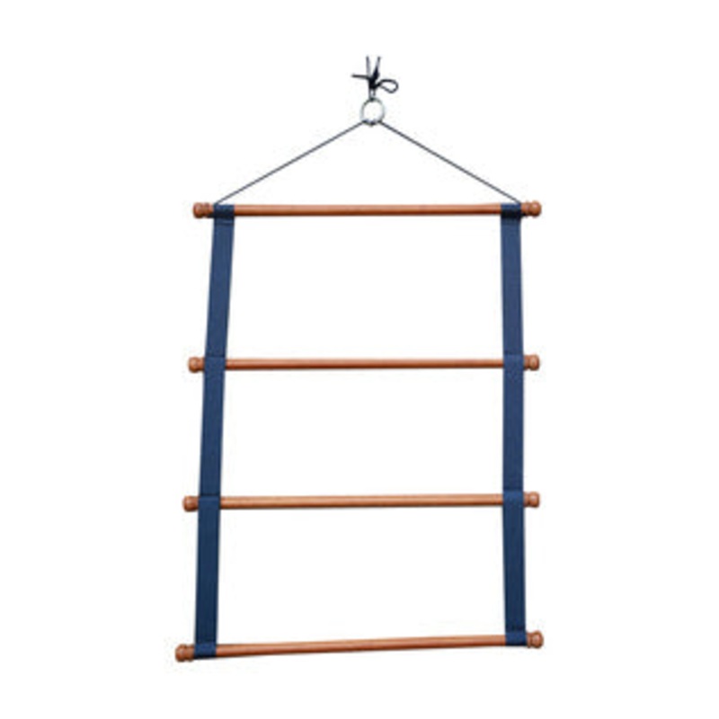 With this Saddle Pad Holder Luxe you are able to store your saddle pads in your tack room, while ensuring their ventilation. It is a practical accessory for stables or on competitions. Furthermore, the navy-blue fabric gives it a very chic look that will match all our stable products and because of the equipped loop and cord, you can attach it wherever you want.
