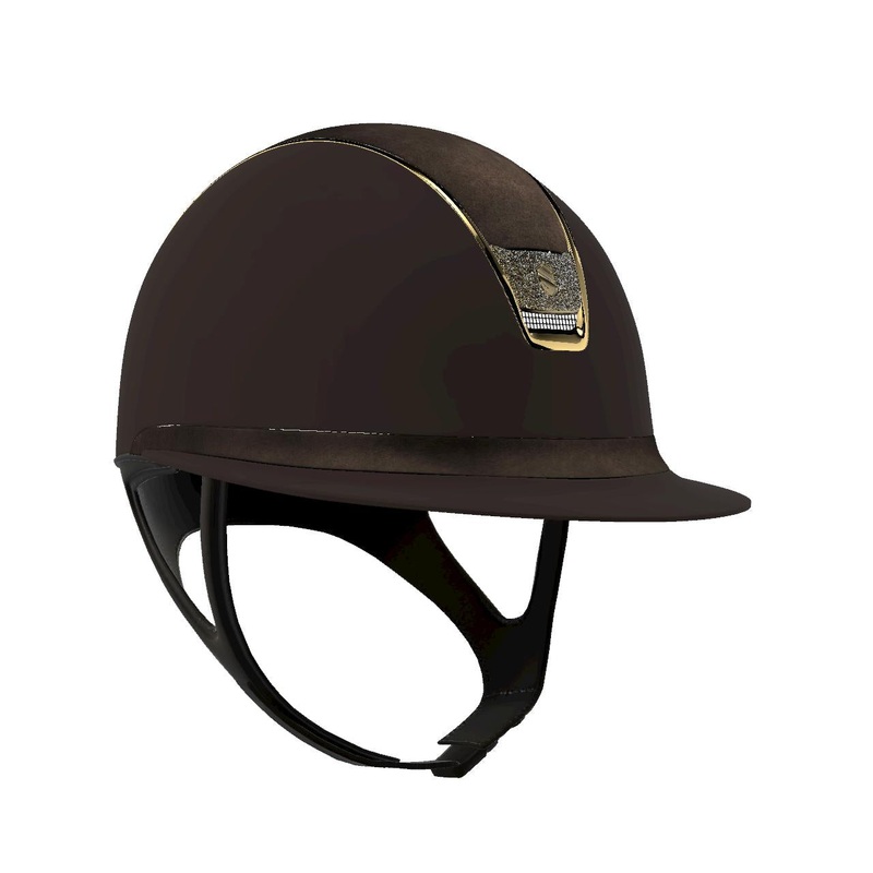 Luxe Miss ShieldSamshield capin een shadowmatt uitvoering met een alcantara top en band en een chrome gouden trim en crystal fabric blazon voor een chique uitstraling.Decapbiedt een ultieme pasvorm en daardoor ook optimaal comfort tijdens het dragen. De ca